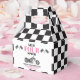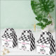DET BEHÖVS FYRA HASTIGHETER FÖR ROSA TUNGA BIKE GIRL BIRTHDAY TEMA. BLACK OCH ROSA GROOVY CHECKERED MÖNSTER RETRO STIL EDITABLE BARNS FÖDELSEDAG.
