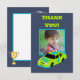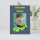 Detta roliga platta tackkort är redo att anpassas med din egen fotografering. Med sin lager kort stil racing bil grafik dekorerad med nummer 4 och slagordet BEHÖVER 4 SPEED är det perfekt för pojkar 4-års födelsedagsfirande. Baksidan har ett tomt område med matchande trofé och rutschbanesignal accenter där du kan skriva in ditt eget tackmeddelande.