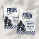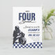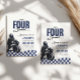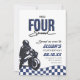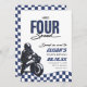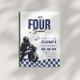 Din lilla kille behöver fyra hastigheter! Fira dina söner 4e födelsedagen med vår blåa, svarta och vita högdagerinbjudan.