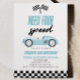 Behöver fyra hastigheter blått Tävling-4e födelsed Inbjudningar