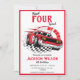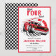 Sätt fart på spänningen för din lilla racers 4-årsdag med vår livfulla röda racingbil-inbjudan. Den perfekta blandningen av kul och spänning, denna inbjudan sätter tonen för en oförglömlig fest. Personifiera den och gör dig redo att susa in i en actionfylld födelsedagsfest!