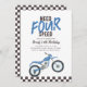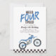 Behöver fyra snabba blåa Dirt Bike Boy 4e födelsed Inbjudningar