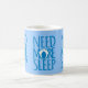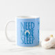 Roligtens slogan mugg behöver mer sömn med o i mer ersatt av ett yawning ansikte. Designad av Sarah Trett.