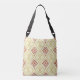 En harmonisk blandning av tradition och modernitet ger denna tote en touch av boutiqueflärd till tribalinspirerad estetik. Den geometriska linjernas precision möter det hantverksmässiga hantverkets värme i en design som är både raffinerad och livfull. Varma nyanser av rött och gyllene gult kontrasterar mot en mjuk krämfärgad bakgrund. Den inbjudande paletten påminner om soldränkta landskap och hantverksmässig elegans. Den har alternerande diamantformer som inrymmer symmetriska tribalmotiv, korsliknande geometriska mönster inom diamanterna symboliserar arv och balans, små diamantaccenter fyller utrymmena för en invecklad men ordnad look. Tillverkad för den kräsna shopparen, beundraren av rena linjer och älskaren av kulturell rikedom. Perfekt för utflykter till hantverksmarknader, galleribesök eller
