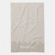 Beige And White Squiggly Chevron Zigzag With Name Kökshandduk