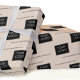 Packar in papper roll med logotyp- och webbplatsmedia eller social-media. Pappra rullar för marknadsföring, omslutning i svart.