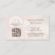 Den här drömmen och affärskortet av elegant har en glödande fjäril omgiven av delikata, vita blommigtar på en mjuk, persikobakgrund. Det är perfekt för alla som vill förmedla en känsla av lugn, vård och skönhet genom sitt varumärke. De främsta visningarna i namn och yrket är tydliga, medan baksidan innehåller utrymme för en QR-kod och kontaktuppgifter, skapar den både vacker och funktionell. Perfekt för yrken som - Holistisk hälare - Reiki-praktiker - Massageterapeut - Livskassan - Hälsa-tränare - Händelseplanerare - Doula eller födelsetränare - Inredningsdesigner - Meditlärare - Esthetician eller skincare specialist - Yoga-instruktör - Beauty salon