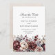 Lägg märke till din stora dag i tidlös stil med den här beigefärgade blommigten Spara datumkortet. Framsidan har en romantisk vattenfärg som är arrangemang i muterade , burga och elfenbenston, medan den mjuka beige vattenfärgen struktur på baksidan ger en varm, minimalistisk beröring. Kortet är perfekt för par som har kärlek naturliga elegans med en modern bohemisk tvist. Om du vill matcha dina bröllop-detaljer är det här Spara datumdesignen perfekt för fall, neutralt eller rustiskt inspirerat bröllop. Koppla ihop det med matchande inbjudan och bröllop-stationär för att skapa en sammanhängande och sofistikerad bröllop-svit.