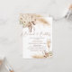 Beige Brown Boho Brunch Bubly Inbjudningskort för möhippan Bohemian blommigt: inbjudningskort för möhippan med två naturliga tonbeige och bruna blommigtar med pampasgräs, ett champagneglas och en elegant modern kalligrafibild.