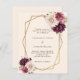 För ett elegant och romantiskt bröllop. En mjuk beige, krämfärgad bakgrund dekorerad med mjuka blush beige och burgunder röda blommor. En falsk guldgeometrisk ram. Personifiera och lägg till era namn och detaljer.