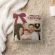 En beige faux burlap tittar bakgrund, dekorerad med en buggbåge. Text och foto. God jul är skrivet med ett stil-retro-teckensnitt. En bild av en sammanbrott, det är inte en sammanbrott.