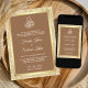 Akta dina gäster med den islamiska bröllopsinbjudan stil med en elegant damm och guld gräns med "Bismillah" i arabisk kalligrafi. Lägg bara till din händelseinformation i den här mallen som är enkel att använda för att göra den till en inbjudan av typen en. Vänd över kortet för att visa ett vackert dammmönster på baksidan av kortet.