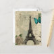 beige Damask butterfly ro Paris Eiffel Torn Vykort