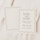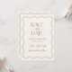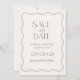 En modern elegant sparar datuminbjudan med vågigt ram gräns och elegant-teckensnittskoppling. Bakgrunden och ram kan vara personlig med vilken färg som helst för att matcha den valda paletten. Perfekt för ett modernt lyxliv i bröllop och en ton för ett oförglömligt firande. Ta en titt på de övriga objekten i Aurelia-samlingen för matchande bröllop-kontorsmaterial och på dagkontorskontorsmaterial, tillverkade med kärlek från Perfekt Papper Store.