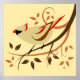 Dekorativ fågelkonst av en stiliserad nordlig kardinal av honkön som genomträngs på snurrande grenar