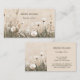 This pretty business card features white wildflowers on a beige background.