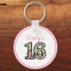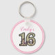 Antalet ludda glitter och rosa glitter i en rosa-vit cirkel. Söt 16. Anpassningsbar Monogram