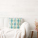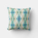 Beige Grönt Blue White Teal Rhombuses Mönster Kudde