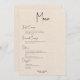 Whimsical minimalistic modern, anpassade black script typography, elegant bröllop menu. Den ljusbeige linne som trycks i struktur ger en aning organisk elegans. Andra färg finns tillgängliga.