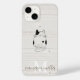 Ska du ändra ditt iPhone-skydd så ofta som vi gör? Kolla in den här Beige Minimal Modern Initial Monogram Namn iPhone 14 Fodral med en doodle yoga-katt på en lätt träbakgrund. Man kan mycket lätt anpassa det med egna namn och monogram och till och med med med egna bild.