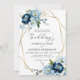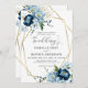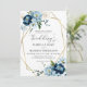 Beige Navy Blue Elegant Blommigt Guld Ram Bröllop Inbjudningar