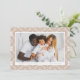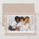 Festivt helgdag-kort med vågräts foto inramat i vitt med en beige och vit nordisk snöflake med mönster. Anpassa det nordiska jullkortet för snöflingor med anpassningsbarna hälsning och namn i beige-bokstäver. Kortet återgår till visning av ditt personliga meddelande.
