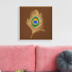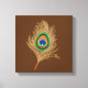 Beige Peacock Feather on Chocolate Brown Canvastryck