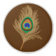 I en Vector teckning av en bondfågel, förstärkt och utsmält i en mjuk konteffekt - mjuk guldbeige och bedun, med rost, koboltblått och emerald grönt öga, på en chokladbrun bakgrund