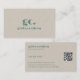 affärskort av minsta elegant för professionell med beige ekologiska hantverksfartyg med papper bakgrund i struktur. Anpassade i botanisk grönt med QR-kod för ytterligare information.