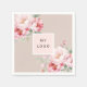 Anpassa och lägga till din logotyp, företag. Beige-bakgrund. Dekorerad med rosa vattenfärgat ro, blommigtar. För företagsevenemang, party, marknadsföring, befordran.