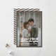 Dela glädjen av din första jul som nygifta med detta Married & Bright-julkort. Med trendiga vinterbrölloppsfärgpaletter och en modern festlig design är detta anpassningsbara kort det perfekta sättet att fira din kärlek och sprida julstämning. Lägg till ditt namn och bröllopsår för att skapa ett minne som lyser lika starkt som ert nya liv tillsammans.