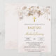 Beige White blommigt baptism-inbjudan