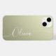Beige Shimmer White Elegant Calligraphy Script Anpassningsbar Personlig Namn iPhone 14 Smart Phone Case har en modern och enkel design för trendiget och snyggt med din personlig namn i elegant-handskriven calligraphy-skripttypografi på en metallisk beige shimmer-bakgrund. Designad av ©Evco Studio www.zazzle.com/store/evcostudio