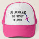 Shock rosa- och vittruckerkeps med bisexuellt månesymbol och text: Liv, frihet och jakten av… båda, stöttar bisexuell person