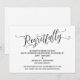 Denna svits utmärkande beror på den invecklade, virvlande typsnittet som används för accentfraser. Om du behöver låta dina gäster veta att ditt bröllop har ställts in, ger detta kort ett elegant alternativ. I denna del användes det kalligrafiska teckensnittet för att skapa en grafisk framställning av ordet "Tyvärr". Använd mallfälten för att lägga till dina personliga uppgifter och gör denna design till din egen. Bakgrunden kan ändras till valfri färg du föredrar. Vänligen hör av dig med eventuella specialförfrågningar eller för anpassningshjälp. // 98 //