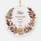 Denna söt prydnadsämne har en vattenfärg porträtt i en fläckig hjort som ramlas in under höstens andetag i blommigten. Baksidan av dekoratet har samma andedräkt med tre fält som du kan anpassa. Det är en underbar gåva när som helst på året till en barndotter, dotter, brorson eller någon annan.