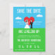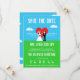 Den här roligten, som är unik och beundransvärd, sparar datumet för bröllop-meddelandet, har 8-bitars brider och groomtecken som blinkar på varandra framför ett rött hjärta, med ett ljust blå himmel med fluffyvita 8-bitars moln.
