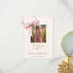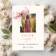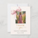 Ett modernt och elegantens bekräftelse tack för en flicka. En mjuk gräddbaksida, dekorerad med stor rosa. Svarta och gyllene brev. På framsidan står texten: Tack, foto, namn och ett datum. Tillbaka: Mall för tackkort och namn.