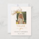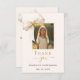 Ett modernt och elegantens bekräftelse tack för en flicka. En mjuk gräddbaksida, dekorerad med stor färgad. Svarta och gyllene brev. På framsidan står texten: Tack, foto, namn och ett datum. Tillbaka: Mall för tackkort och namn.