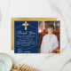 Tack familj och dina kära för att du närvarade vid din sons bekräftelse med det här eleganten guld kor och Tack Fotokort för marin blå bekräftelse. Den här utformningen har ett vackert gyllene kor med ett gyllene ram mot en rik marin blå bakgrund. Baksidan har en fin metallisk bakgrund i guld. Byt ut fotot mot en bild av ditt barn. Anpassa texten och teckensnittet efter dina önskemål. Annat typsnitt och stilar tillgängligt. Kontakta oss med dina speciella förfrågningar och vi skulle vara lycklig för att hjälpa dig.