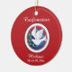 Bekräftelse av färgfull duva på röd bakgrund julgransprydnad keramik