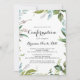 Den här hälsningsbekräftelseinbjudan till grey tropical modern calligraphy är perfekt för en enkel religiösa-händelse. Utformningen har främst tropiska löv av grönt med en aning blommor av rosa.
