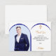 Lägg till ett storlekt foto för lodrät. Ett blått färgad i form av foto ram. Anpassa och lägg till namn och detaljer.