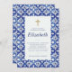 Består av serif-typografi. Allt mot en bakgrund av blå och vita Medelhavsbrickor. Detta är designat av Select Party Supplies, exklusiv för Zazzle. Finns här: http://www.zazzle.com/store/selectpartysupplies