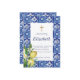Sammansatt av serif- och kursiv skripttypografi. Allt mot en bakgrund av blå och vita Medelhavsbrickor, spanska plattor med löv, citroner och botaniska blommor av vild blommigt. Detta är designat av Select Party Supplies, exklusiv för Zazzle. Finns här: http://www.zazzle.com/store/selectpartysupplies