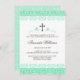Härlig första nattvardsgång- eller bekräftelseinbjudan (4,5" x 6,25") för flickor som presenterar en nedersta ett mintgröntsnöre/damastast gräns som är bästa och, och en mörkbruntkor med mintgrönt, frodasr. Anpassadeinbjudantext. För beställnings- förfrågan eller hjälp med customization behaga använda som lagerkontakten anknyter.