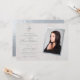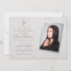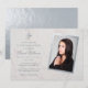En modern inbjudan till en religiös händelse. Texten är i den vänstra halvan. Fotot är snedställt, i den högra halvan, i en falsk silverfolierad ram. Bakgrunden är vit marmor. Ovanför texten finns ett falskt silverkors. Texten är silvergrå. Namnet är skrivet med en elegant kalligrafisk stil. Baksidan är falsk silverfolie.
