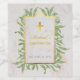 Denna religiösa i elegant har grönt som lämnar runt faux guld foil ram med vit marmor insida, som innehåller texten ovanför texten, delvis i en triangel på övre delen av ram finns det en faux guld foil kor. Namn är skrivet i ett kalligrafiskt skript för elegant, resten med versaler. Tillfälle och namn är gyllene, dagen är grått. Bakgrunden är vit marmor. Grönten löv kommer från mönster under 1800-talet av William Morris (1834-1896), benämnd "Willow Bough", som består av vig grenar med grönt löv, nu offentligt.