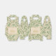 Vintagens bakgrund mönster är mönster från 1800-talet i tapet av William Morris (1834-1896), benämnd "Willow Bough", bestående av viljeproducerat grenar med grönt lövs, nu offentligt. På båda sidor har man faux guld foil ramar, med gyllene text med en (faux) guld kor ovanför. Namn är skrivet i elegantens kalligrafi, resten i versaler.