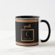 Bekräftelse: " Jag är Chef Dam" Mugg i Copper faux metallic Typography tillsammans med ditt Monogram och Namn. På en bakgrund av klassiskt svart, den faux kopparkonstnärliga återgivningsdimensionen i ge till bekräftelsen " Jag är Chef Dam" med en följeförsäkran på den andra sidan "Ja!". Och för att försegla tanken på ett effektivt sätt, en koppar-struktur-ram för din monogramstart och namn. Använda alternativet Anpassa om du vill infoga ditt eget namn och börja, ändra till och med teckensnittet om du vill. Börja varje dag med ditt kaffe och den här bekräftelsen och snart känner du dig stark. Gör det här nya året till ditt år. Du kan göra det här. Detta vackra makthavande mugg är en del av"Affirmation Mugg Collection" i vår butik, med var och en tänkbart designad av vår besökta artist Nancy Lambert.